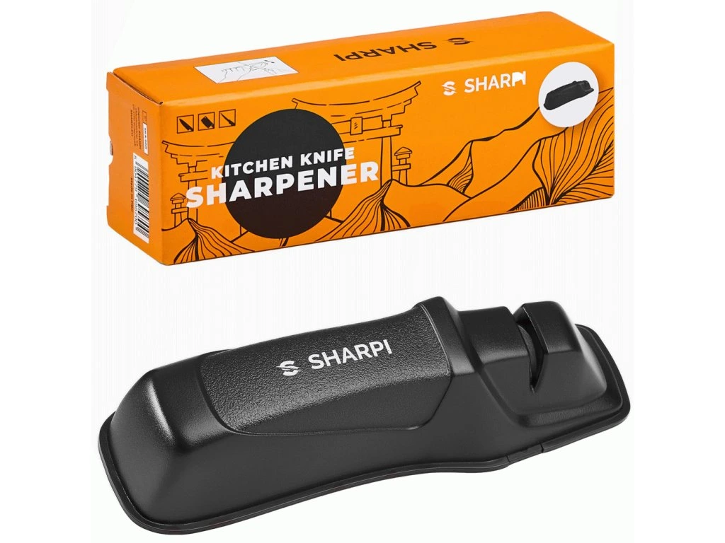 Ruční diamantová kuchyňská bruska Sharpi vám efektivně a rychle nabrousí všechny typy kuchyňských nožů – od čínských, japonských až po evropské a damaškové. Bruska zvládne naostřit všechny nože s tvrdostí do 65 HRC. Díky kompaktním rozměrům a jednoduchému designu je ideální pro domácí i profesionální použití. Bruska nabízí hrubý stupeň broušení – diamant zrnitosti 360.