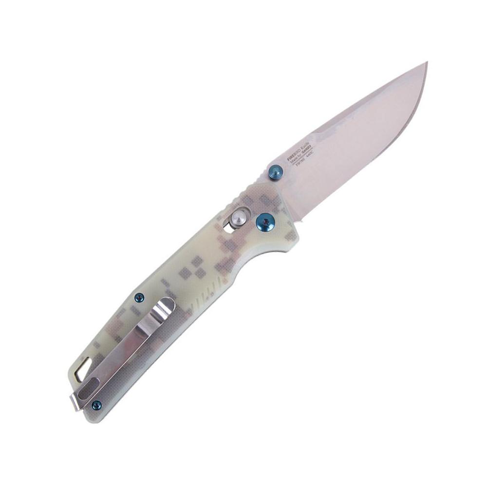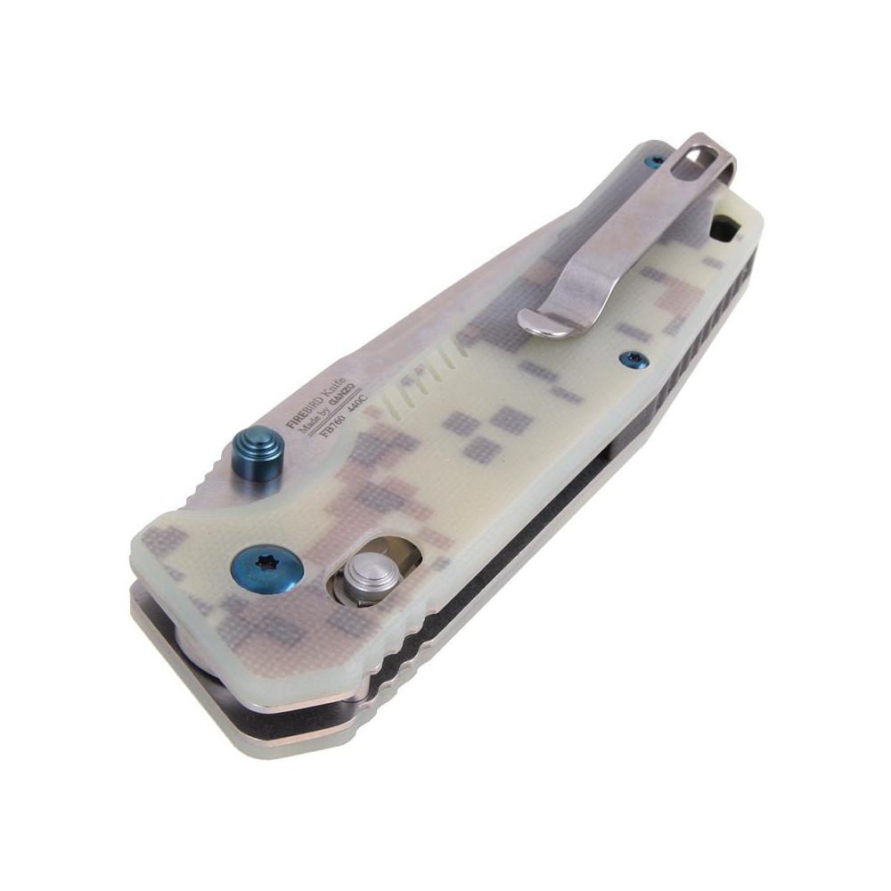 Rukojeť nože Firebird FB7601 je vyrobena z materiálu G10. Tento lehký kompozitní materiál se vyznačuje především svojí odolností. Navíc je nenasákavý, nevybledne na slunci a je celkově velmi odolný. Je dobrou volbou pro tábornický nůž. Rukojeť je protiskluzová díky vroubkování jemného geometrického vzoru na povrchu G10. Nechybí ani klip, který umožňuje nůž zavěsit.