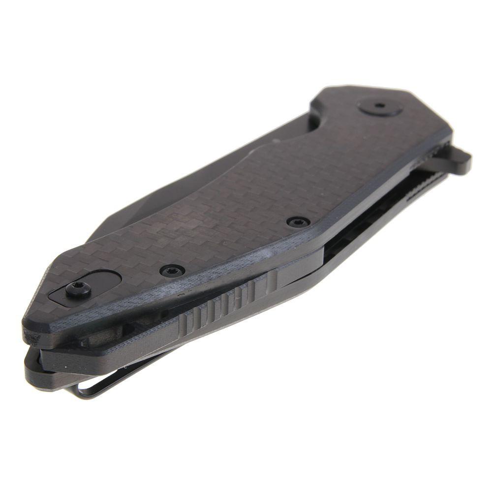 Čepel rychle otevřete ukazováčkem pomocí tzv. flipperu. Čepel je černěná, matná, je odolná proti otiskům prstů. Jištění čepele je řešeno pojistkou typu Liner-lock. Čepel je dlouhá 86mm s tloušťkou 3,0mm a má plochý výbrus.