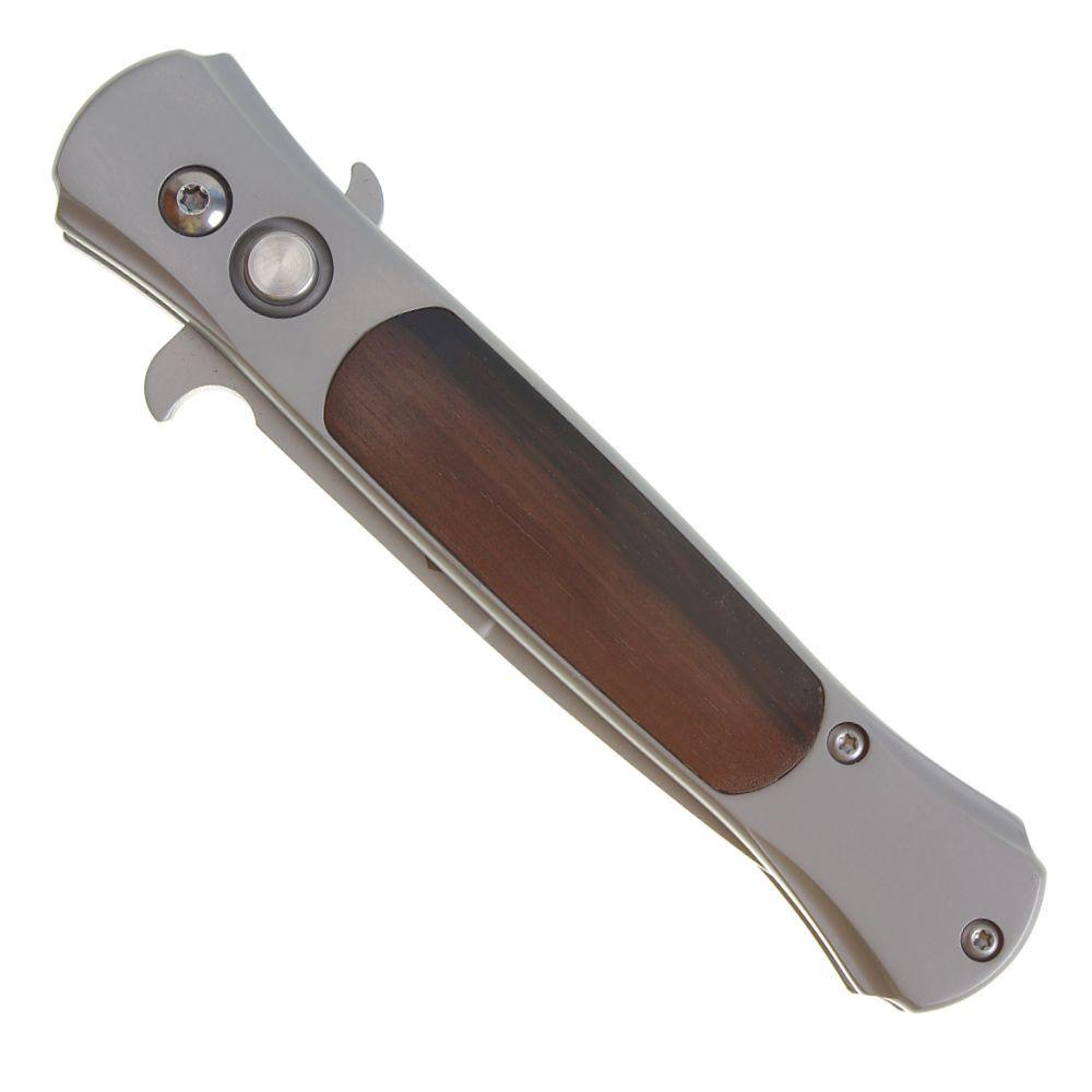 Rukojeť je vyrobena z nerezové oceli a má dřevěné vložky. Na rukojeti je klip, kterým lze nůž připevnit k opasku nebo jinému vybavení