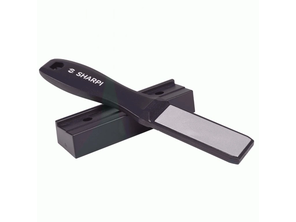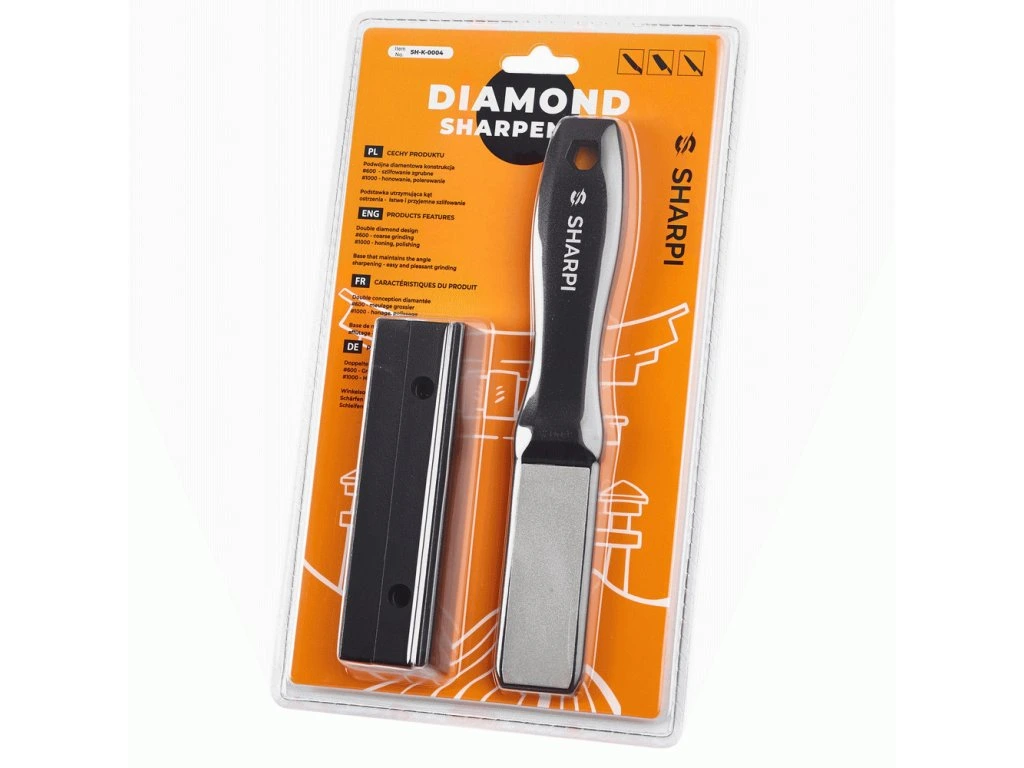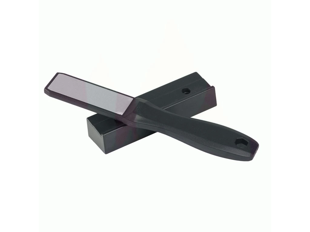 Ruční diamantová bruska na kuchyňské nože. Střední a jemný stupeň broušení (zrnitost 600/1000) je vhodný pro všechny nože s tvrdostí do 65 HRC. Ergonomický držák poskytuje snazší kontrolu během broušení.