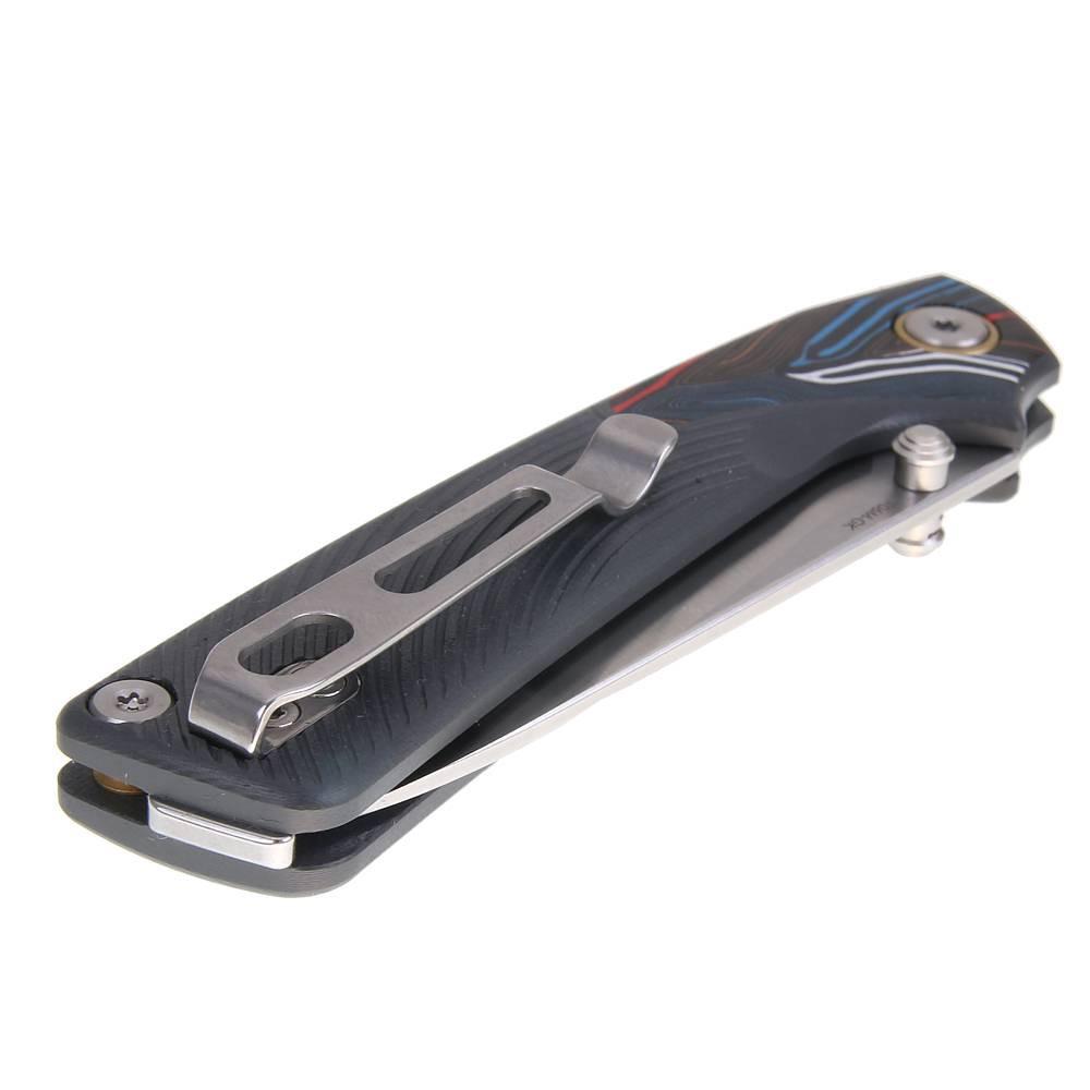Texturovaná rukojeť z materiálu G10 zajišťuje jistý a pohodlný úchop v každé situaci. Díky praktickým možnostem otevírání – pomocí kolíčku na palec nebo tradiční drážky pro nehet – je ovládání nože plynulé a intuitivní, a to i bez zámkového mechanismu.