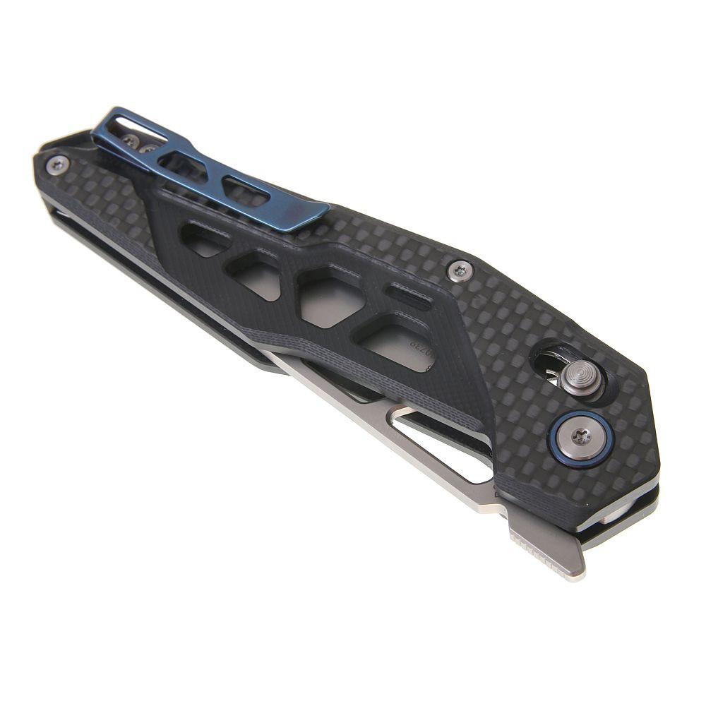 Ocel D2 (tvrdost HRC 59–61) zaručuje dlouhotrvající ostrost a spolehlivý výkon i při náročném používání. Texturované střenky z G10 poskytují jistý a neklouzavý úchop v každé situaci. Díky inovativnímu „front fin“ systému otevírání lze čepel rychle a nenápadně otevřít jednou rukou. Bezpečné zajištění čepele zajišťuje pohodlný Ambi-Lock (crossbar lock), který umožňuje plynulé a bezpečné ovládání jak pravákům, tak levákům.